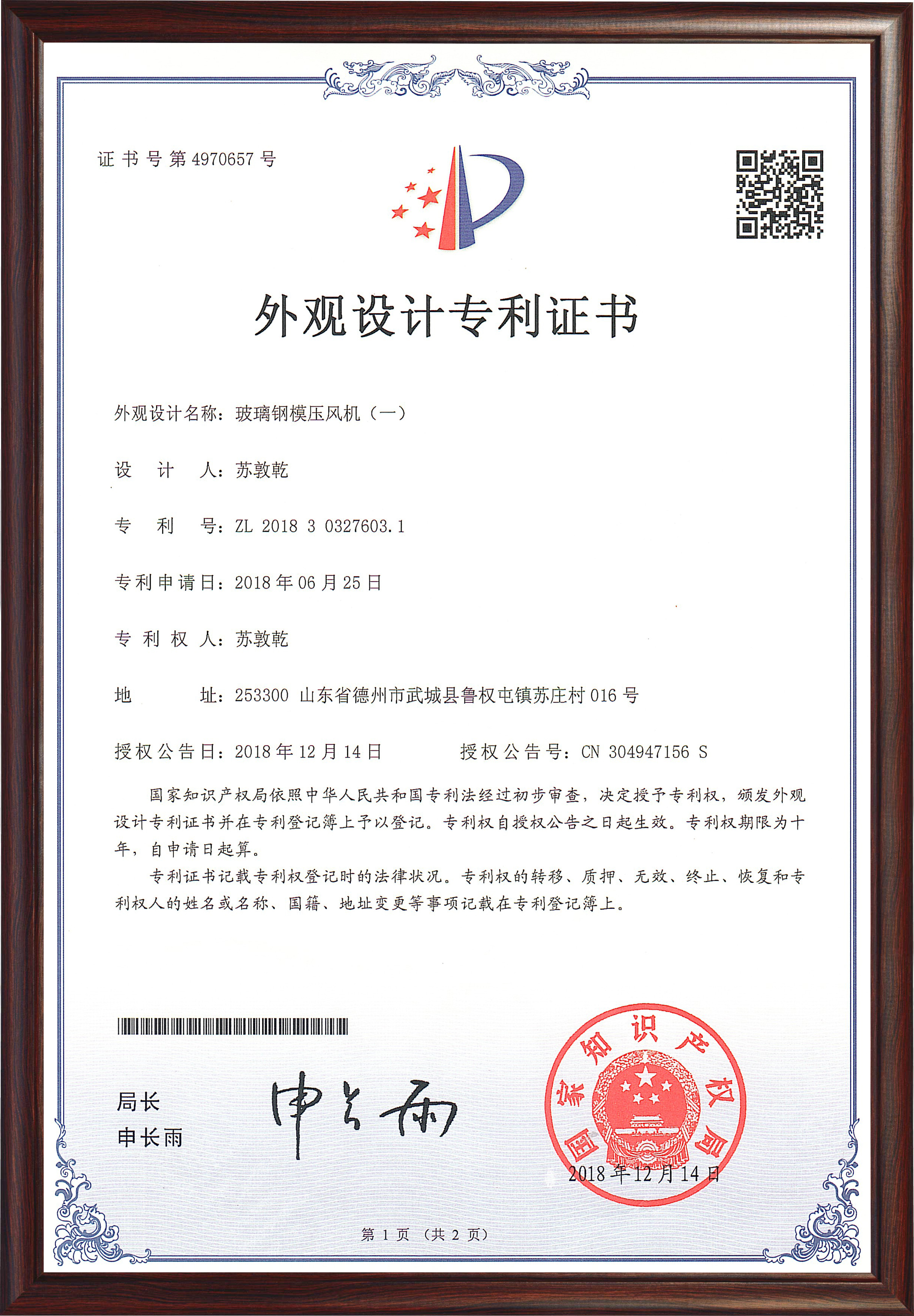 專利證書